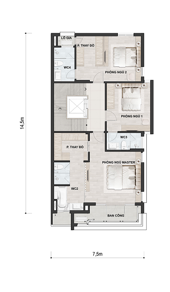 (*) Bố trí nội thất chỉ mang tính tham khảo, thông tin chính thức phải căn cứ theo hợp đồng